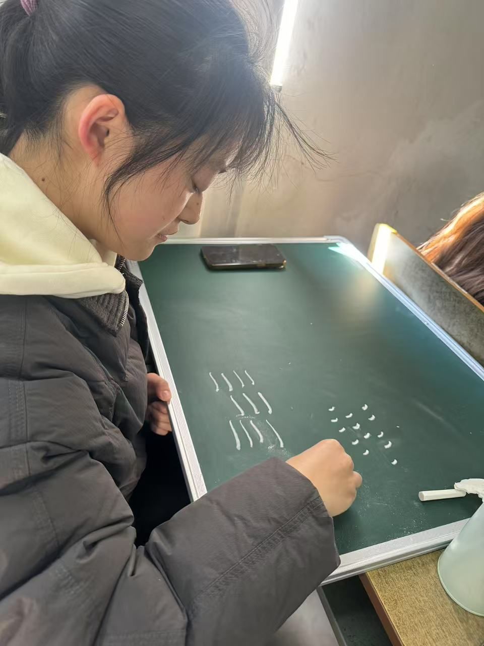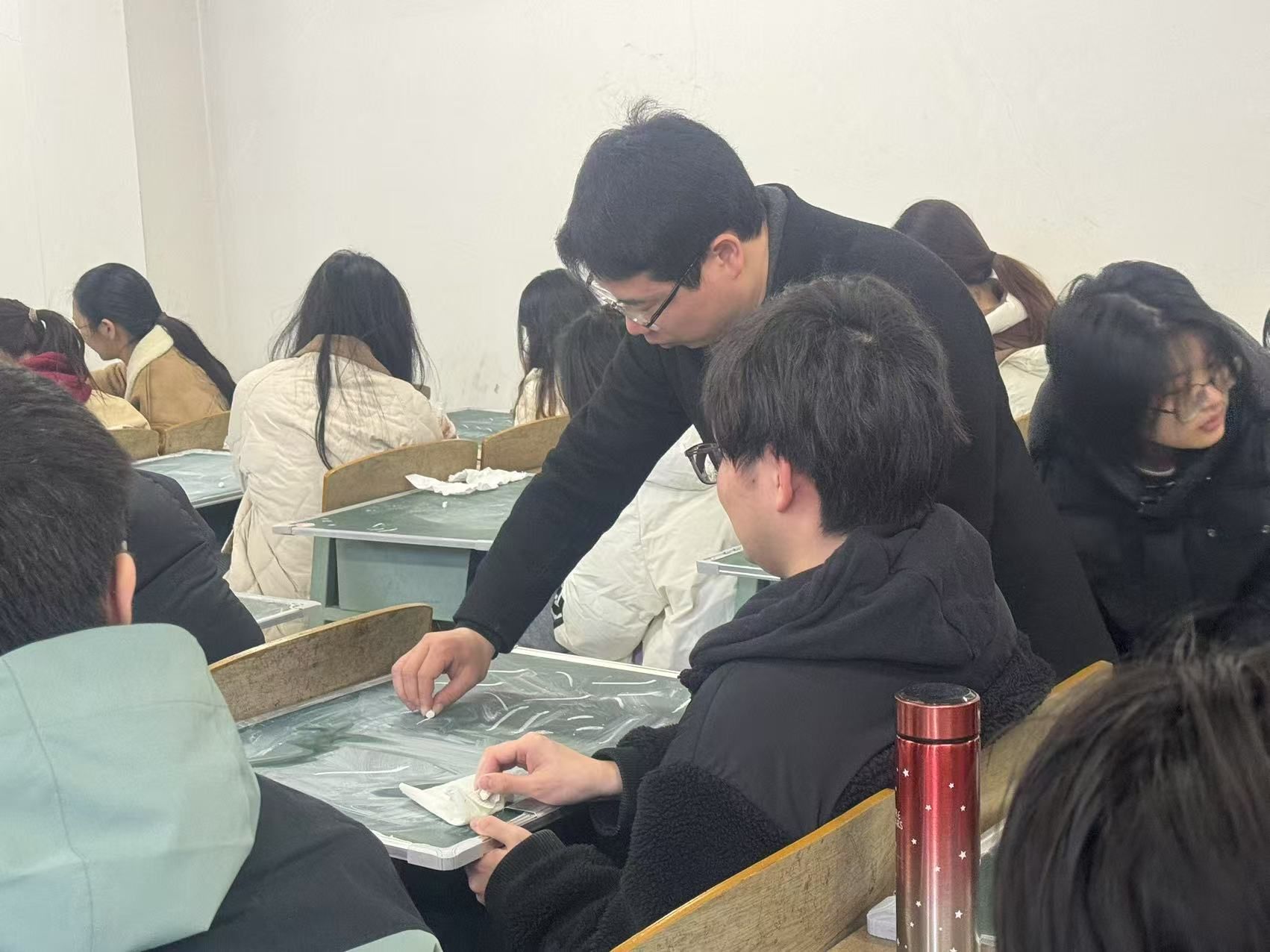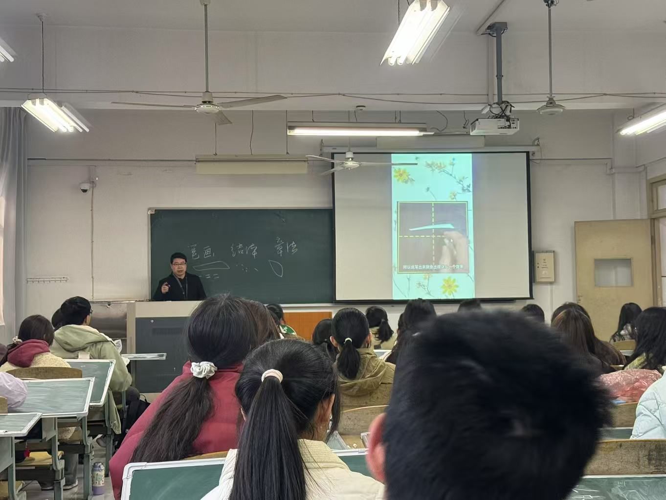 在书法技能培训中,彭智老师分别为2023、2024级同学主讲了粉笔字书写技巧,同时也对板书布局与课堂应用场景进行了深入分析。同学们认真学习,用心领会每一个知识点,积极与老师互动交流。在实际书写练习环节,同学们更是全神贯注,力图将每一个笔画都写到完美。通过这次培训,同学们不仅在书法技能上有了明显提升,更是对书法艺术有了深刻的理解。