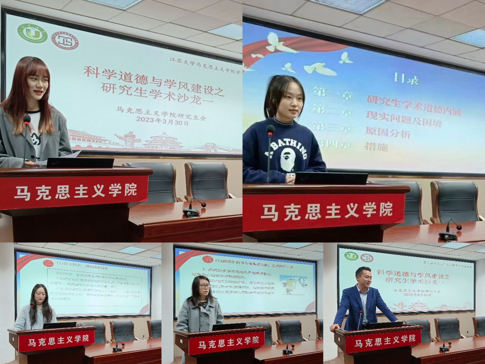 活动伊始,主持人周雅雯就本次学术沙龙的主题、背景和学术价值进行了介绍。许莉莎就“研究生学术道德内涵”相关知识进行了发言。张新月从论文抄袭、剽窃,一稿多投等现实案例出发,谈了她对新时代高校研究生学术道德的现实问题及困境的理解。王卢从内外部因素两个方面对研究生学术道德问题的原因进行详细分析。陈哲与同学们一起探讨了杜绝研究生学术道德失范行为的相关措施。