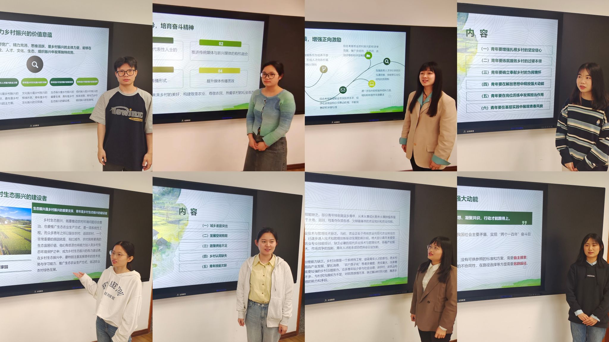活动伊始,主持人周雅雯就本次学术沙龙的主题、背景和学术价值进行了介绍。方杰和常溟夏围绕新时代青年助力乡村振兴的价值意蕴指出了新时代中国青年在乡村振兴中的独特优势。肖译和周欣玫介绍了新时代中国青年助力乡村振兴存在城乡差距突出、发展空间有限、政策供给不足等现实困境。王田田和孙莎莎着眼于新时代中国青年助力乡村振兴的优化路径,就基础设施、产业链条、政策扶持等方面提出了建议。邓美宝和杨子健强调新时代中国青年助力乡村振兴的使命担当,号召青年要到祖国最需要的地方去,努力成为扎根基层、推动乡村振兴的主力军。在讨论交流环节,同学们结合自身专业知识积极提问,共同探讨新时代中国青年怎样更好成长成才,服务祖国和人民。