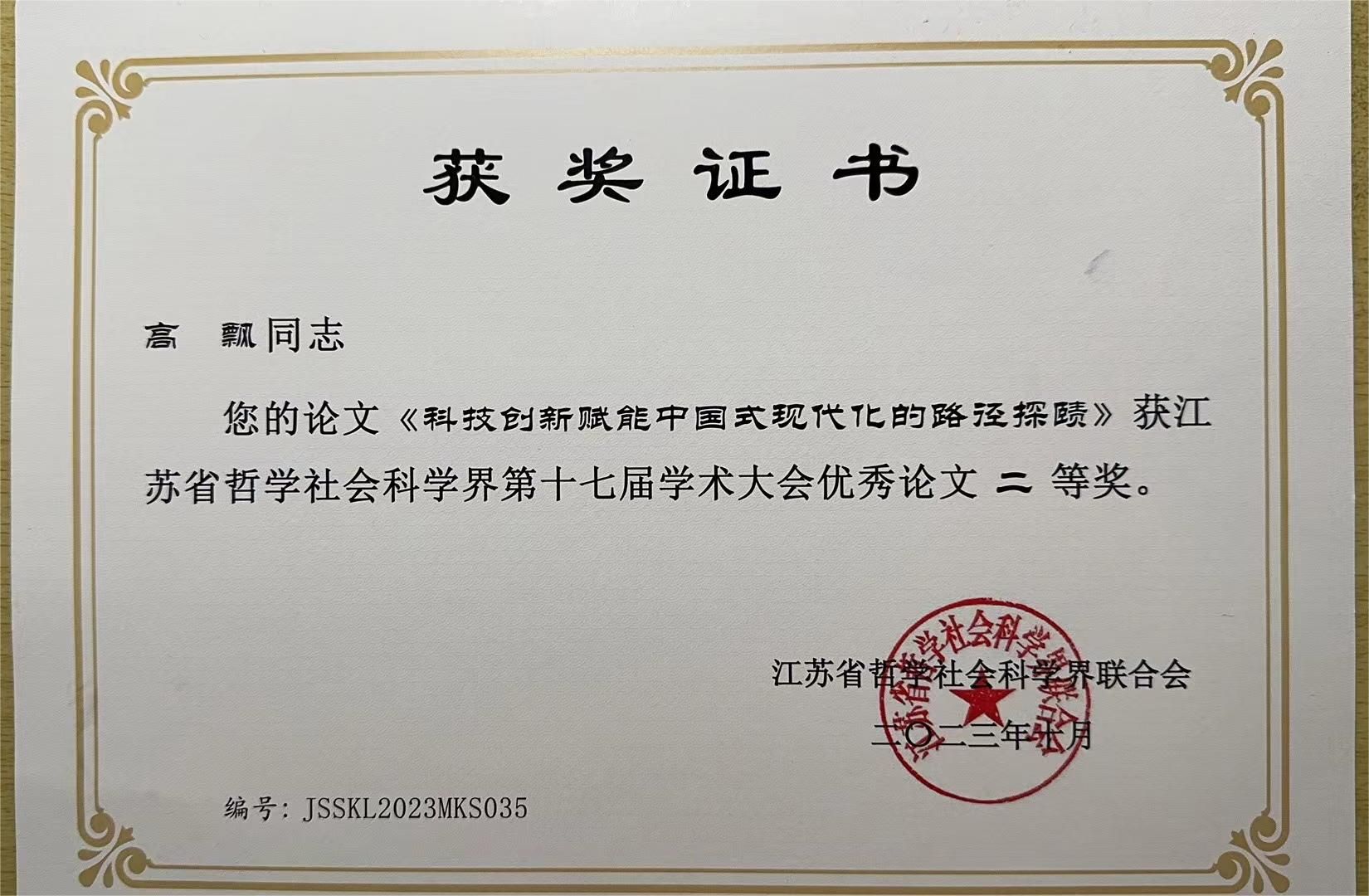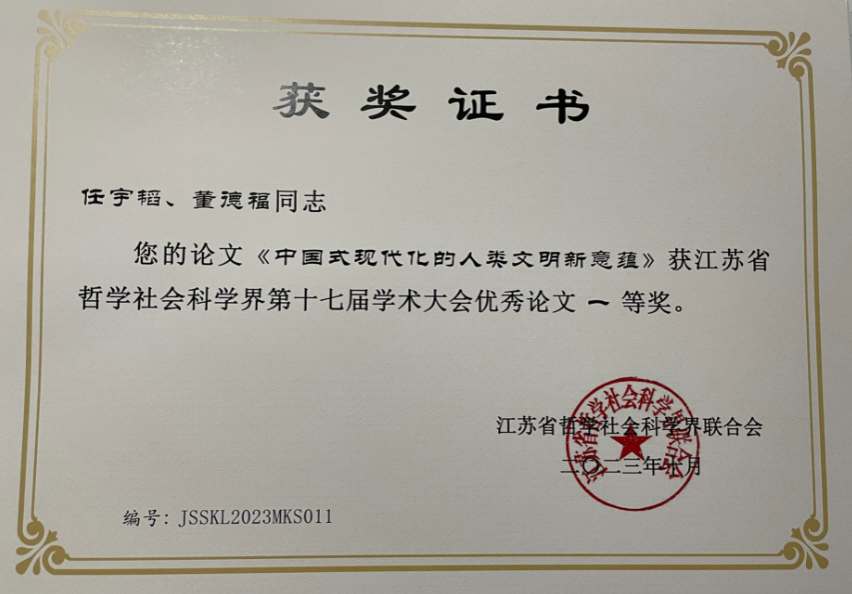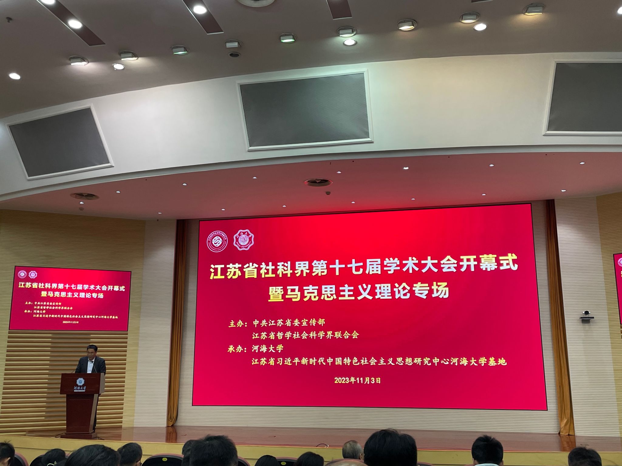 11月3日,由省委宣传部、省社科联主办,河海大学、省习近平新时代中国特色社会主义思想研究中心河海大学基地承办的江苏省社科界第十七届学术大会开幕式暨马克思主义理论专场在河海大学西康路校区举行。我院院长李丽教授全程参加了会议,2022级哲学专业研究生任宇韬和2021级马克思主义理论专业研究生高飘两位同学以文入会,其论文分别获评省哲学社会科学界第十七届学术大会优秀论文一等奖和二等奖。