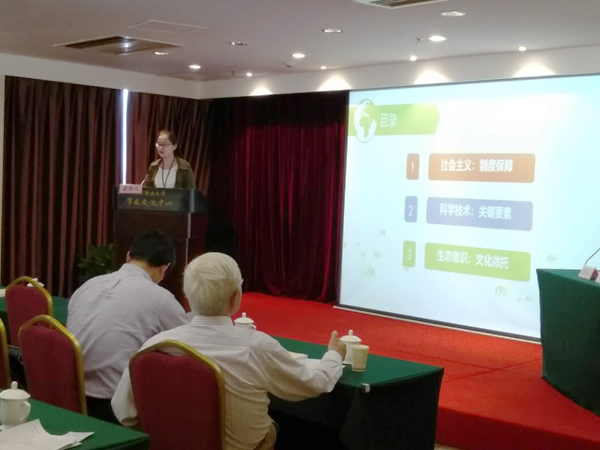 本届会议紧紧围绕“自然辩证法为国服务的实践路径”“中国改革开放与自然辩证法事业发展”“自然辩证法研究与智库建设”“自然辩证法研究与美丽中国建设”“生态文明体制改革与美丽中国建设”“人与自然和谐共生的现代化理论与实践”等相关主题进行展开,共有一场专家主题报告和三场论文报告。佘梅溪在第二阶段作了论文报告,从社会主义制度保障、科学技术关键要素、生态意识文化依托等几个方面,阐发了生态文明建设中物质主义的消解途径,获得了与会专家学者的好评。