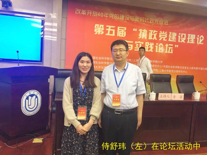 5月25日-27日,由中国社会科学院马克思主义研究院、上海大学和中国科学院大学联合主办的第五届“执政党建设理论与实践论坛”学术研讨论坛在上海举行。来自中国社会科学院马克思主义研究院、上海大学、中国科学院大学、各大高校的专家及优秀成果入选作者聚集一堂,共同研讨执政党建设。永利3044集团硕研17级侍舒玮同学应邀参加了此次论坛。