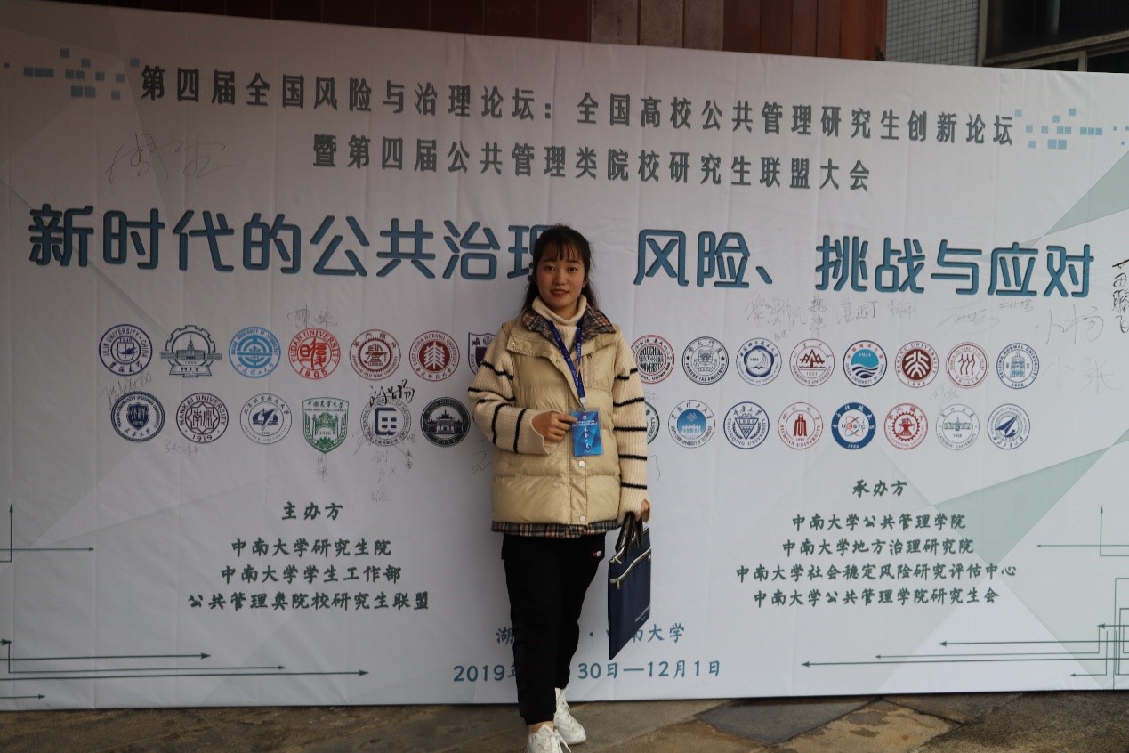 11月30日-12月1日,由中南大学公共管理学院主办的“新时代的公共治理:风险、挑战与应对——第四届全国风险与治理学术论坛暨第四届公共管理类院校研究生联盟大会”在长沙召开,我院2018级研究生王小芳同学应邀参加,其论文《乡村振兴视角下的农村人居环境治理思考——以吕梁市柳林县为例》荣获大会优秀奖。