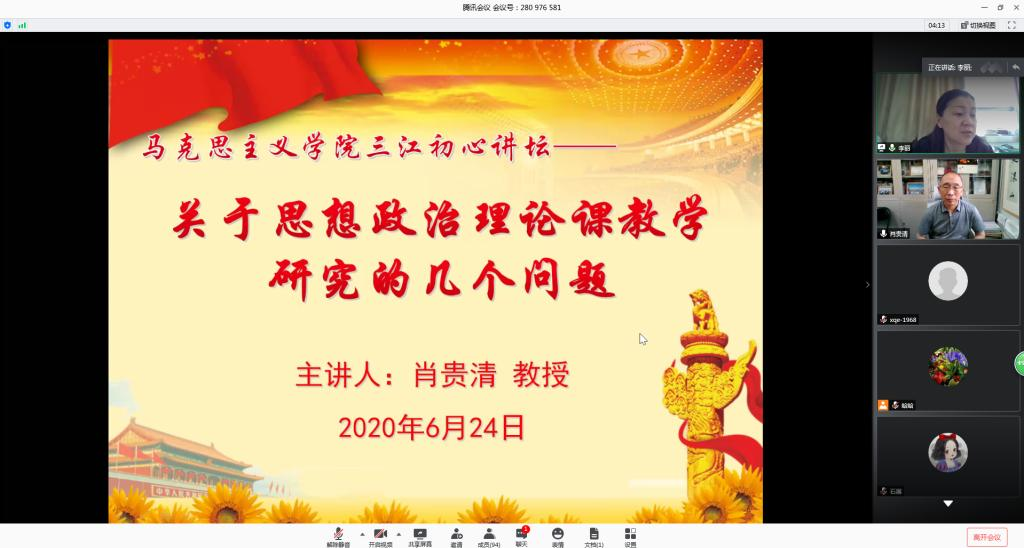 肖贵清教授的报告以《关于思想政治理论课教学研究的几个问题》为题,探讨新时代思想政治理论课守正与创新的问题与方法。他针对思想政治理论课改革取得的主要成绩和思想政治理论课教学需要解决的问题,着重探讨了在改革中不断完善思政课的教学体系问题,强调了掌握好思政课教学内容的整体性、坚持理论联系实际、师资队伍建设要常抓不懈、运用多种教学手段,增强思政课的吸引力和感召力等几点要求。肖贵清教授也对课程思政提出了建设性的思路和建议。报告中,肖贵清教授还围绕思政课教师在教学研究的选题和开展路径及研究方法等方面进行了有针对性的指导,对提升教学质量和教师的研究能力均有重要的指导作用。