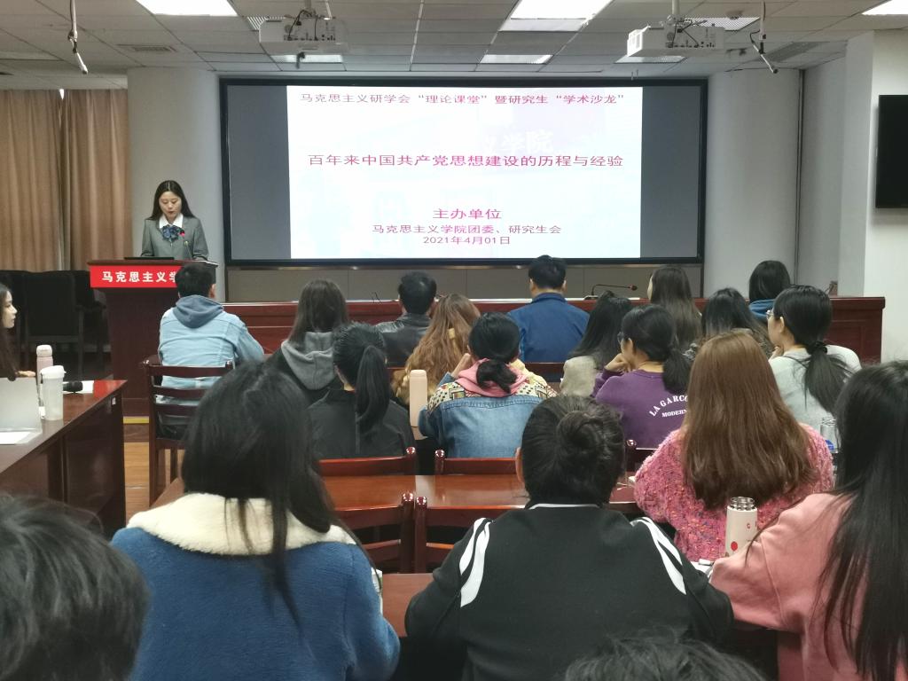 为深入贯彻体会中国共产党思想建党的伟大智慧,4月1日上午,永利3044集团研究生会、青年学习社在三江楼1701学术报告厅举办“百年来中国共产党思想建设的历程与经验”学术沙龙活动。思政专业负责人董德福教授和孙旭红副教授受邀担任点评老师,全体2020级硕士研究生参会,活动由宋真真同学主持。