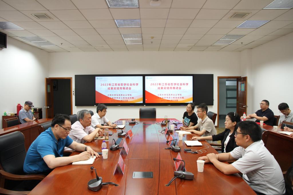 6月24日下午,我院在三江楼1706举行2022年江苏省哲学社会科学成果奖培育推进会,邀请苏州大学方世南教授和南京林业大学孙建华教授交流经验。院长李丽教授、副院长蒋俊明教授以及教师代表近20人参加了本次会议。会议由副院长李宏刚教授主持。