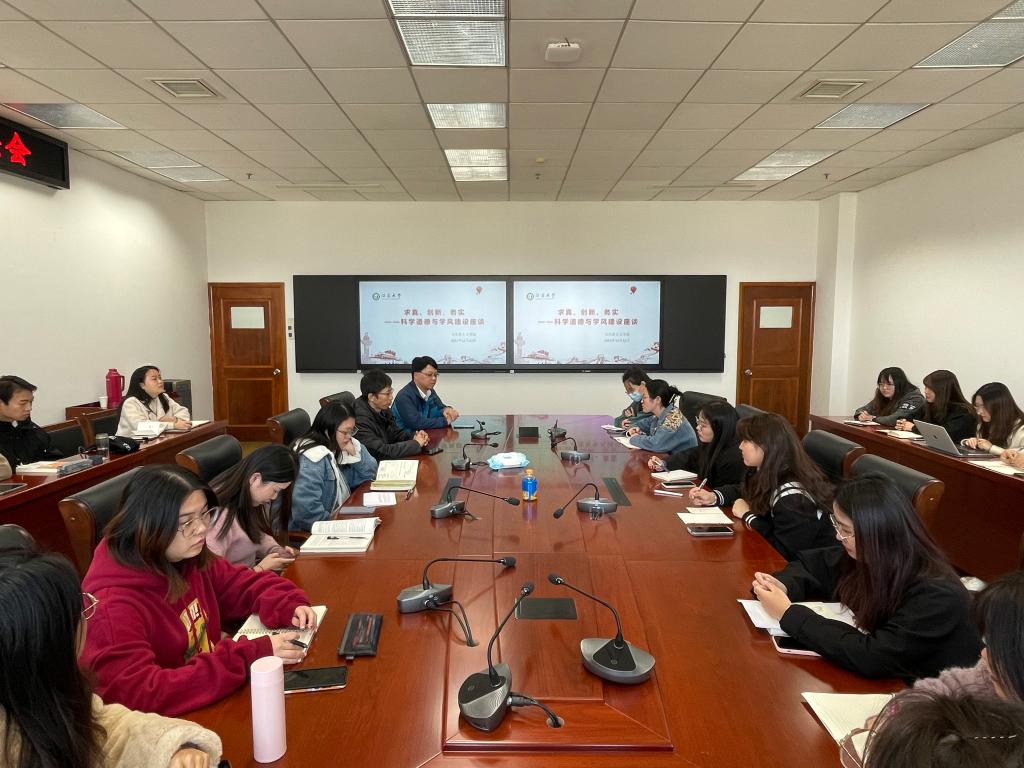 孙旭红老师以现实中违背科研道德的具体案例作为切入点,警示研究生们应坚决杜绝学术不端行为;并指出研究生应坚持实事求是的科学精神和严谨的治学态度,忠于真理、探求真知,自觉维护学术精神,反对投机取巧的作风和行为,要争做遵守和履行学术规范和学术道德的先行者。