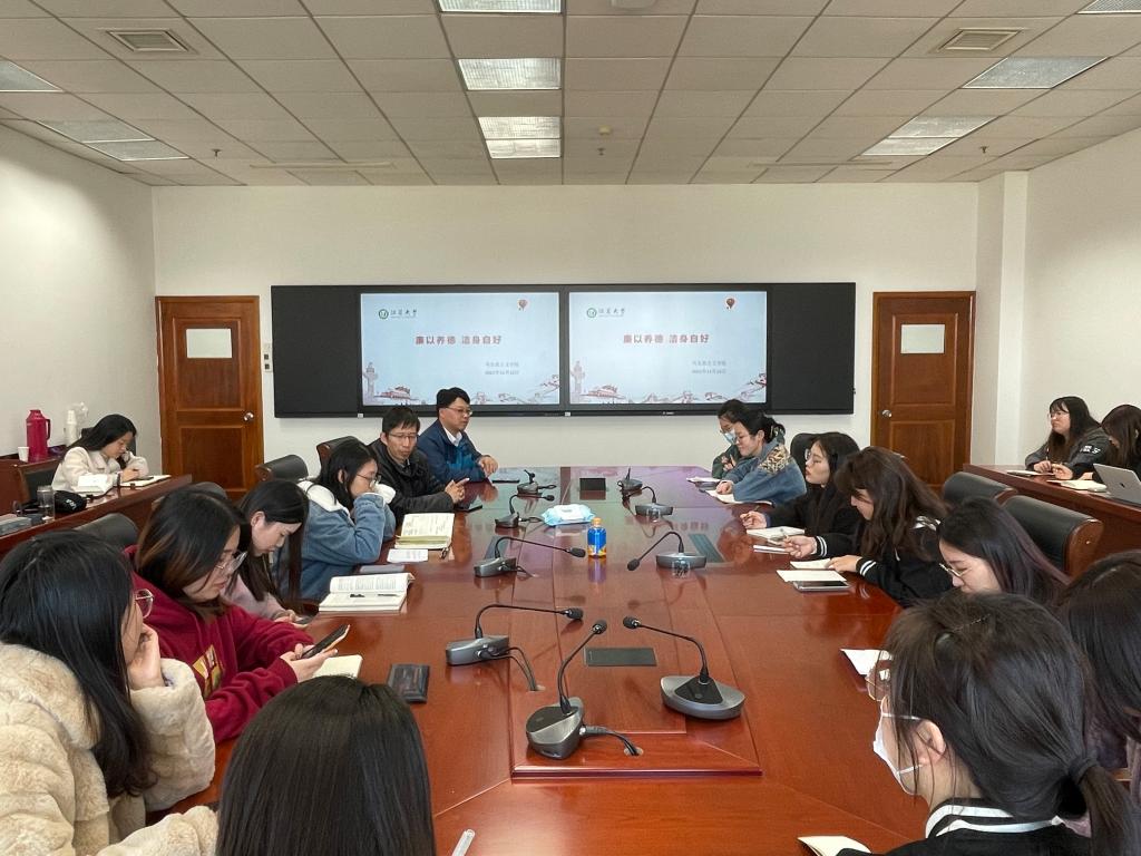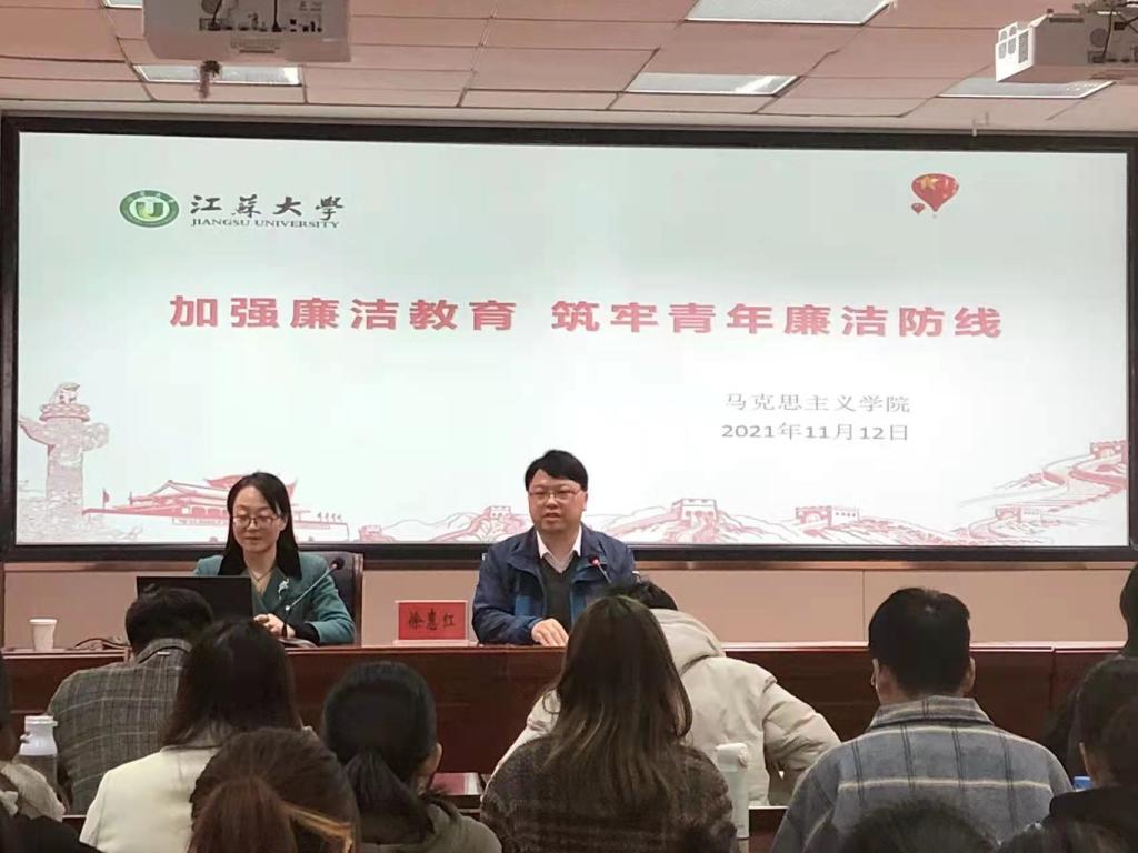 徐惠红老师从高校人才培养和学生成才需要两个方面说明了加强廉洁教育的重要性;还从强化廉洁意识、加强自我约束以及勇于检视问题、做到求真务实三个方面讲述了研究生应如何筑牢青年廉洁防线。