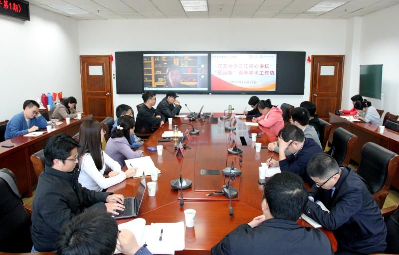 10月29日下午,由江苏省习近平新时代中国特色社会主义思想研究中心基地(永利集团)、永利3044集团、永利集团共同富裕研究院主办,永利集团思政课教学名师工作室、永利3044集团马克思主义基本原理教研室、永利3044集团青年学术工作坊团队承办的永利集团三江初心讲坛暨2022年首期“见山集”青年学术工作坊在三江楼1706举行。学院院长李丽教授、副院长蒋俊明教授、副院长李宏刚教授及近5年入职的学院青年教师、部分院外青年教师线上线下参加活动。本次活动以“站稳讲台与做好学问能否兼得?——解密青年教师的双重成长”为主题,由永利3044集团付清松教授受邀担纲主讲,肖建国副教授、孙旭红副教授、李春建副教授与谈,彭智博士主持。