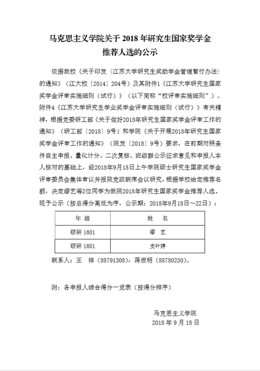 马院2018年研究生国家奖学金汇总量化得分一览表.xls