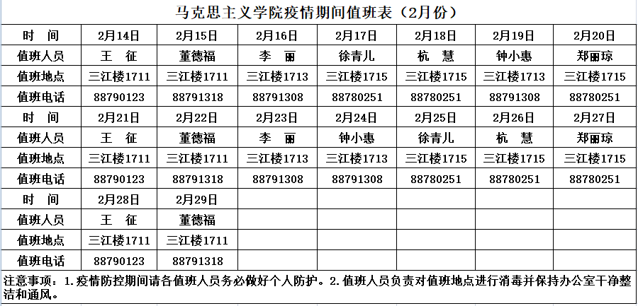 【疫情防控】永利3044集团疫情期间值班表(2月份)