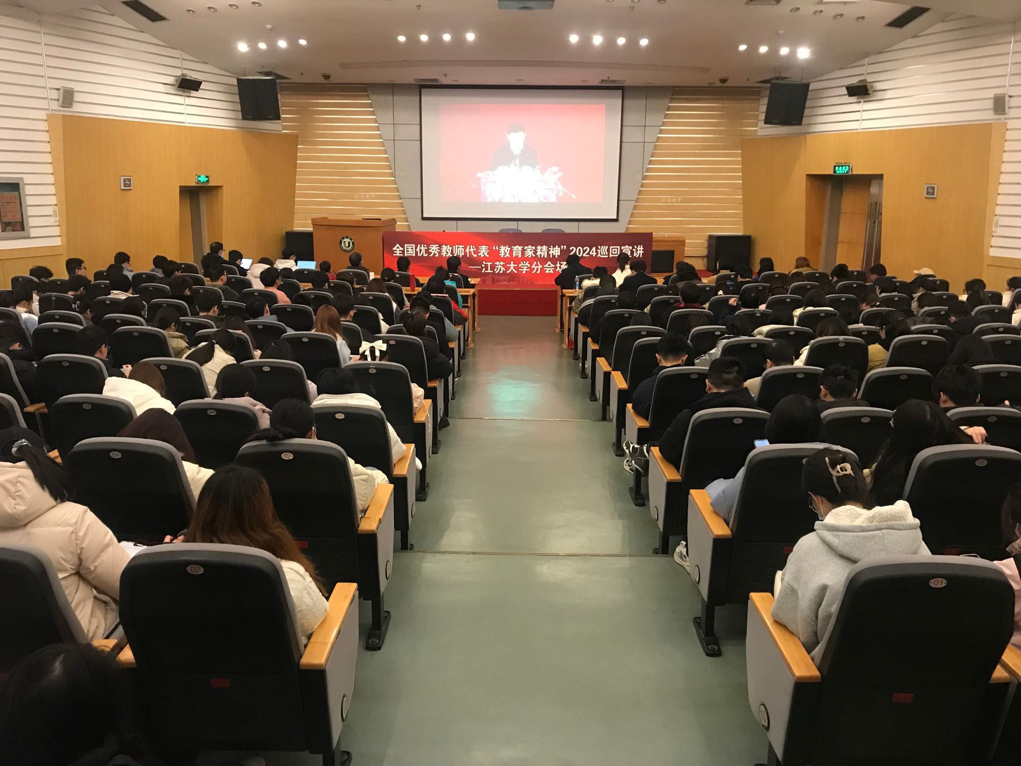3月2日上午,全国优秀教师代表“教育家精神”2024年巡回宣讲江苏报告会在南京师范大学举行。我院师生代表共30人在我校分会场会议中心第一报告厅现场集中收看。