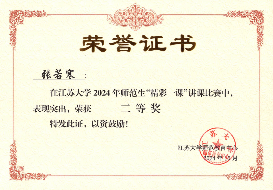 本次比赛按照省师范生教学基本功大赛的竞赛机制进行,由粉笔字和钢笔字书写、口语表达、模拟授课与课件制作三个模块构成。经过激烈角逐,我院学生丁昊、张若寒分获一等奖、二等奖。