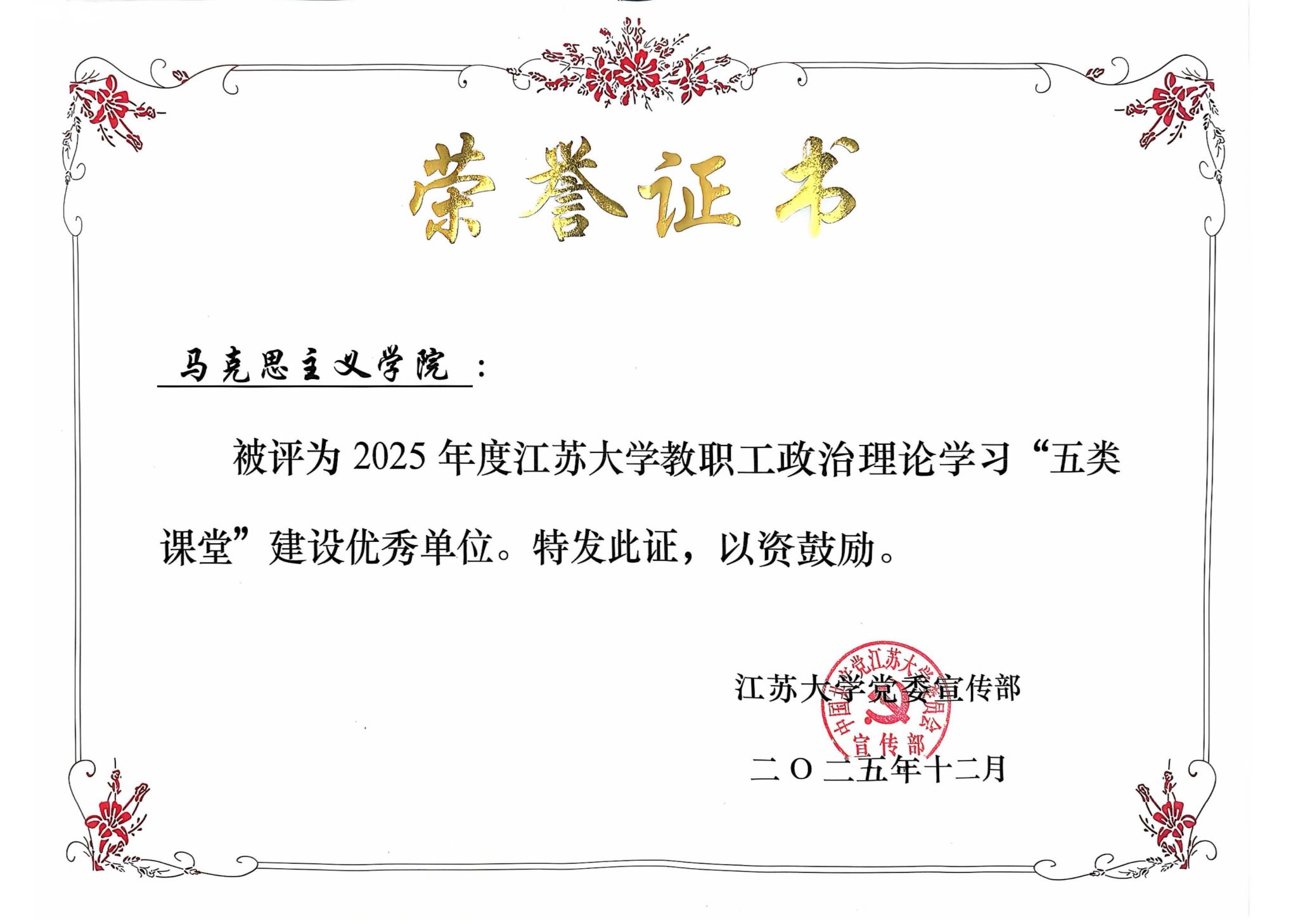 2025年永利集团教职工政治理论学习“五类课堂”建设优秀单位