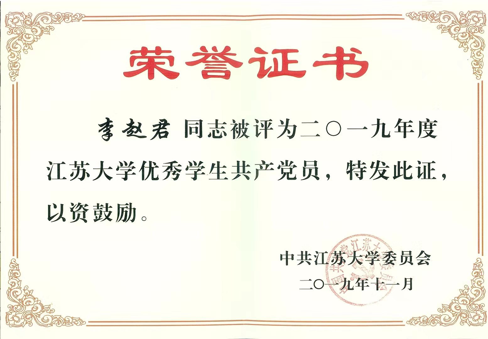 2019年度永利集团优秀学生共产党员